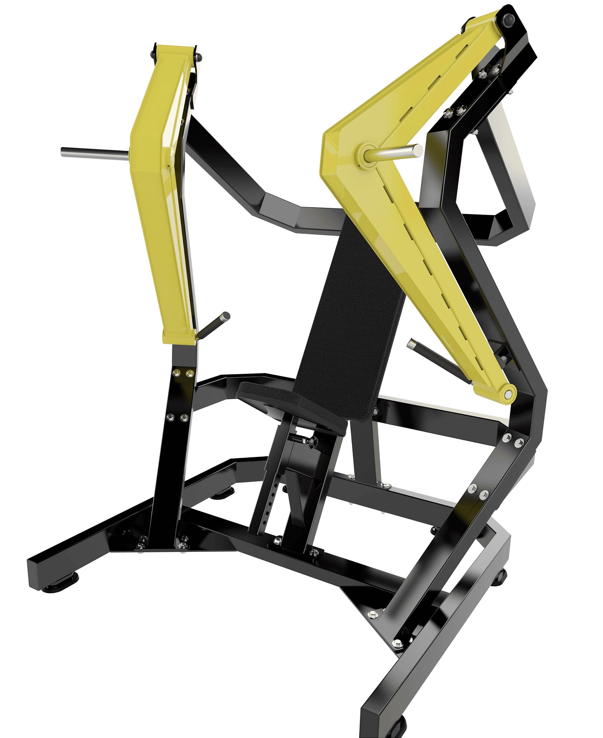 Máquina Supino Declinado Sentado, também conhecido como Supino Declinado Sentado ou Supino Declinado articulado, possui articulação angular e anilhado.